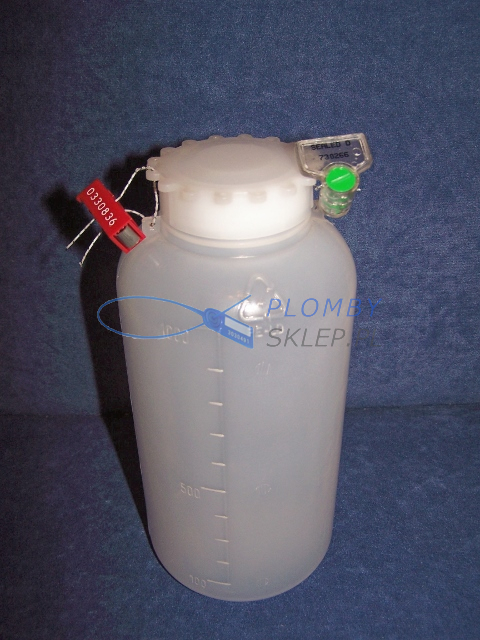 Butelka jest koloru białego, wykonana z polietylenu. Zarówno butelka jak i zakrętka posiadają małe otworki, przez które można przełożyć drut plomby (np. Plastic Seal 14 300mm lub 500mm).
